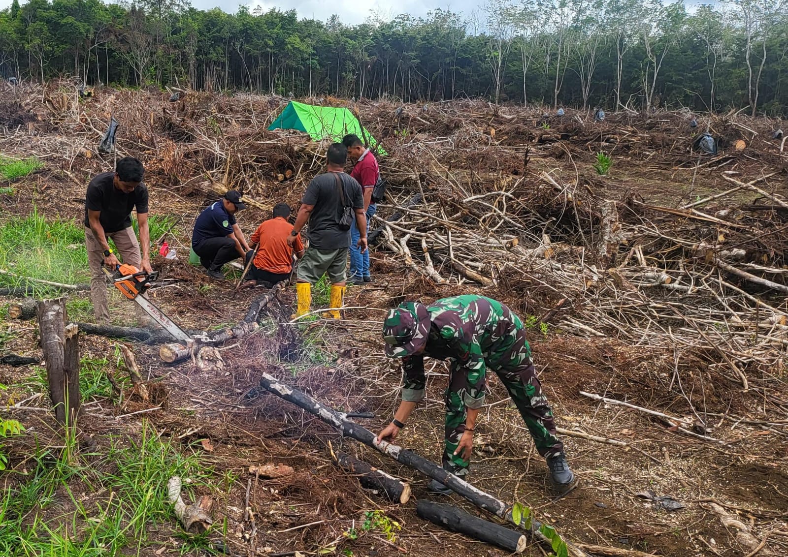 Kutai Barat – Wujud nyata kemanunggalan TNI dengan rakyat kembali terlihat dalam pelaksanaan program TNI Manunggal Membangun Desa (TMMD) Wiltas Ke-127. Anggota Satgas TMMD dari Kodim 0912/Kutai Barat bersama warga Kampung Linggang Amer melaksanakan kegiatan gotong royong membantu mencari kayu bakar untuk persiapan acara syukuran di rumah salah satu warga, Selasa (17/2/2026).