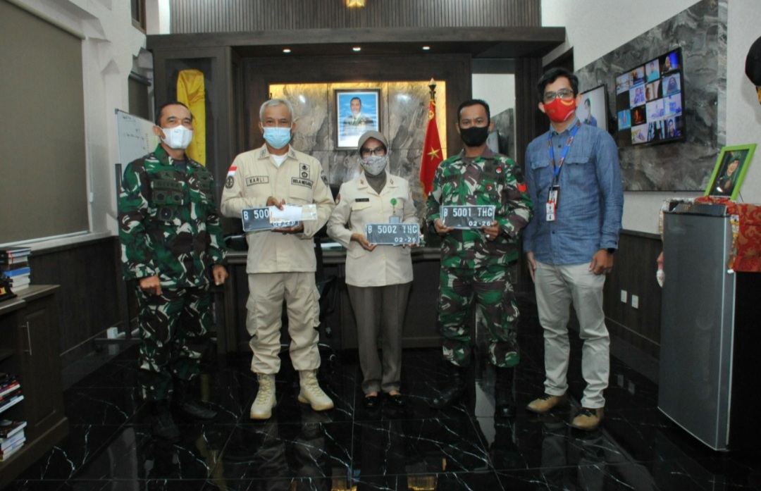 PT. Pins Serahkan STNK Motor Grandprize Kepada 3 Personel Dispenad yang Beruntung