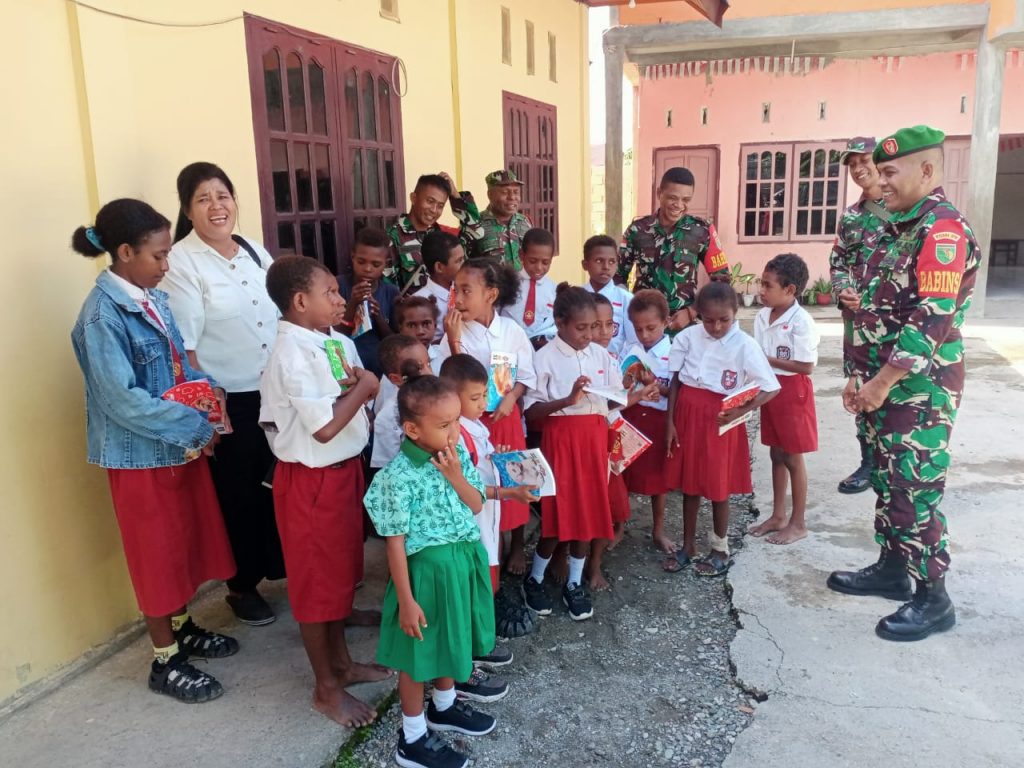 Babinsa Timika Bagikan Buku Tulis ke Siswa SD Teologi Kristen