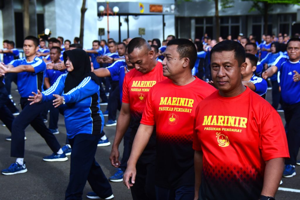 JAGA KEBUGARAN, PRAJURIT MAKO KORMAR LAKSANAKAN OLAHRAGA BERSAMA