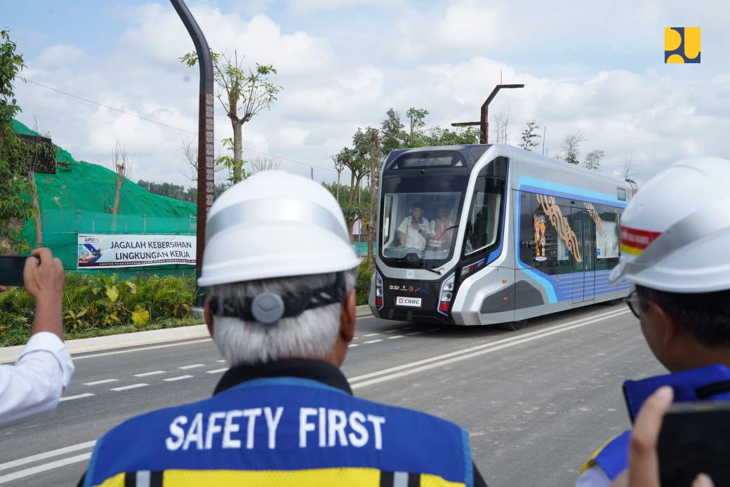 Penajam Paser Utara – jejakprofil.com – Menteri Pekerjaan Umum dan Perumahan Rakyat (PUPR) selaku Plt Kepala Otorita IKN meninjau uji coba kereta otonom atau Autonomous Rail Transit (ART) di Jalan Sumbu Kebangsaan, Kawasan Inti Pusat Pemerintahan Ibu Kota Nusantara (KIPP IKN), Kalimantan Timur pada Minggu (11/8/2024).