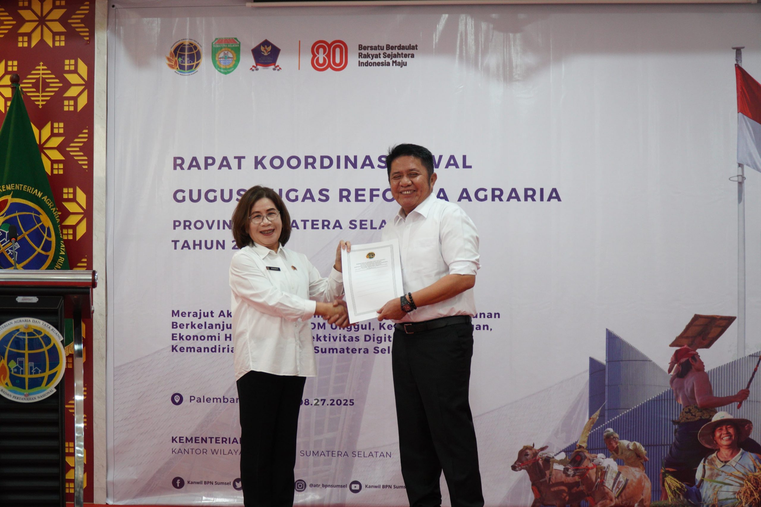 Palembang – Pemerintah Provinsi Sumatera Selatan bersama Kanwil ATR/BPN Sumatera Selatan (Sumsel) kembali meneguhkan komitmennya untuk mempercepat reforma agraria di tahun 2025.