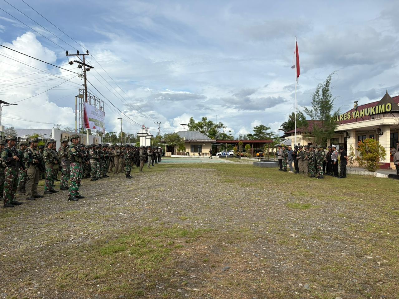 Yahukimo – Untuk mengantisipasi potensi kerawanan keamanan menjelang 1 Desember 2025, serta menyambut Natal, TNI-Polri di Kabupaten Yahukimo menggelar apel dan patroli skala besar yang berpusat di Mapolres Yahukimo, Minggu (30/11/2025). Kegiatan ini dipimpin Wakapolres Yahukimo Kompol Komarul Huda bersama Dandim 1715/Yahukimo, Letkol Inf Didiet Trilaksono,S.M.,M.H.I.
