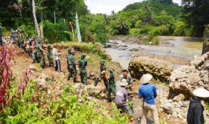 “Pembangunan jembatan yang nantinya akan digunakan oleh masyarakat adalah perintah langsung dari bapak Panglima TNI. Ini sangat penting karena kemaren sudah ada jembatan disini namun dengan arus yang besar putus. Ini kita sudah mulai, tadi juga sudah saya sampaikan kepada reka-rekan di wilayah, kita kerja semaksimal mungkin, malampun kita kerjakan, ini sangat dibutuhkan oleh masyarakat kita,” ujar Mayjen TNI Lin Nofrianto.