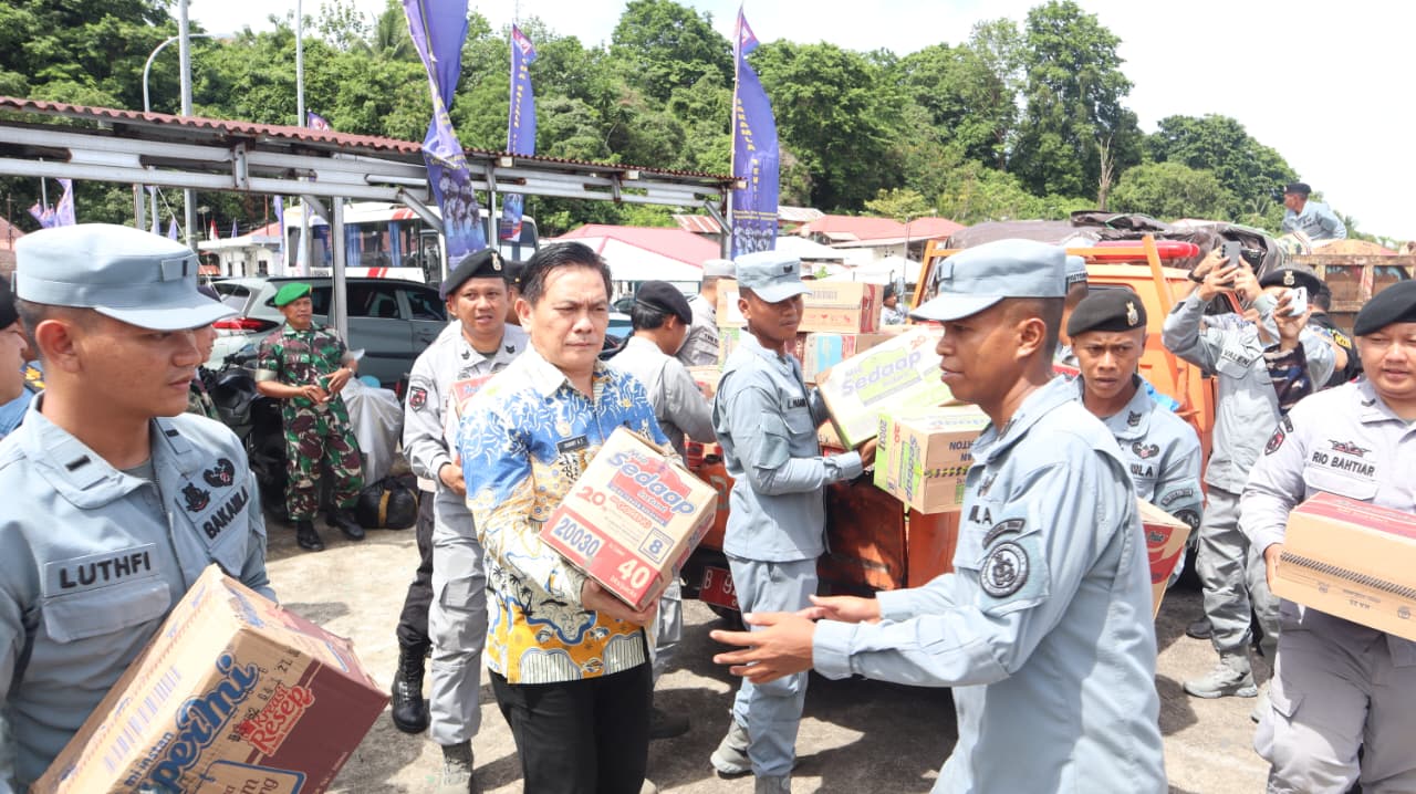KN. Singa Laut-402 yang dikomandani oleh Letkol Bakamla Hadi Wahyono membawa berbagai kebutuhan logistik, antara lain bahan pangan, air minum, perlengkapan bayi dan perempuan, alat kebersihan, obat-obatan ringan, serta perlengkapan tidur. Bantuan tersebut merupakan hasil sinergi dari Zona Bakamla Tengah, Balai Monitor Spektrum Frekuensi Radio Kelas II Manado, BPBD, Badan Kesbangpol Sulawesi Utara, serta partisipasi aktif masyarakat.