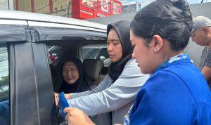 Seperti terlihat pada Senin (9/2/2026), petugas teller BRI kanca Cimanggis, Ainaya Lana Arista H melayani nasabah pensiunan dengan memberikan pendampingan administrasi di dalam kendaraan yang terparkir.