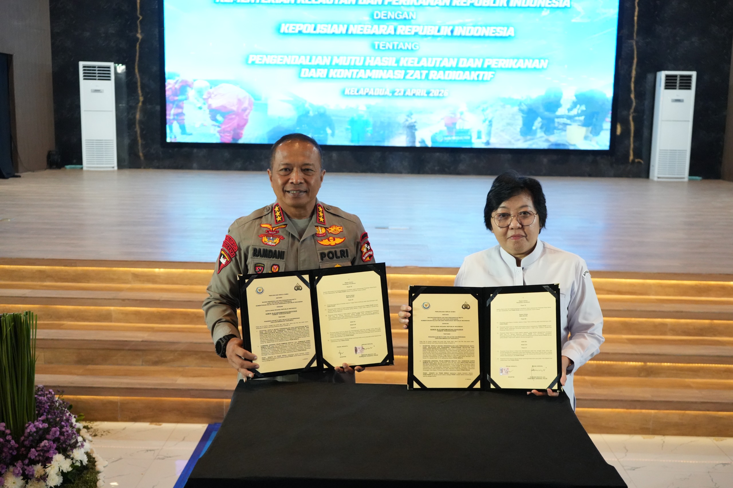 “PKS yang saya tandatangani bersama Bapak Komandan Korps Brimob, Komjen Pol. Ramdani Hidayat, S.H. ini memiliki ruang lingkup yang memang implementasinya untuk mendukung tusi KKP, yaitu pendayagunaan SDM dan sarpras untuk melaksanakan skema sertifikasi bebas radioaktif produk perikanan, pengendalian kontaminasi zat radioaktif, pertukaran data serta peningkatan kapasitas,” tuturnya.
